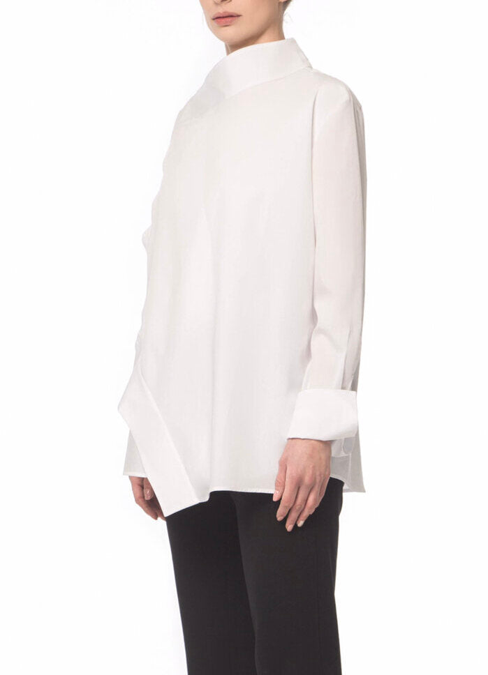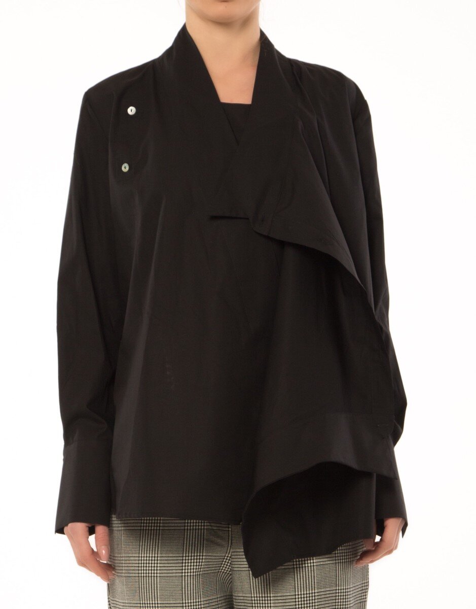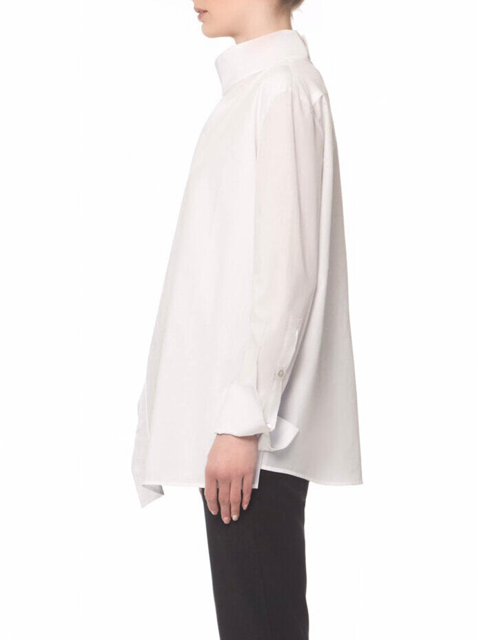 DECONSTRUCTED COTTON POPLIN SHIRT WITH AN OPENING ON THE BACK OF THE COLLAR.