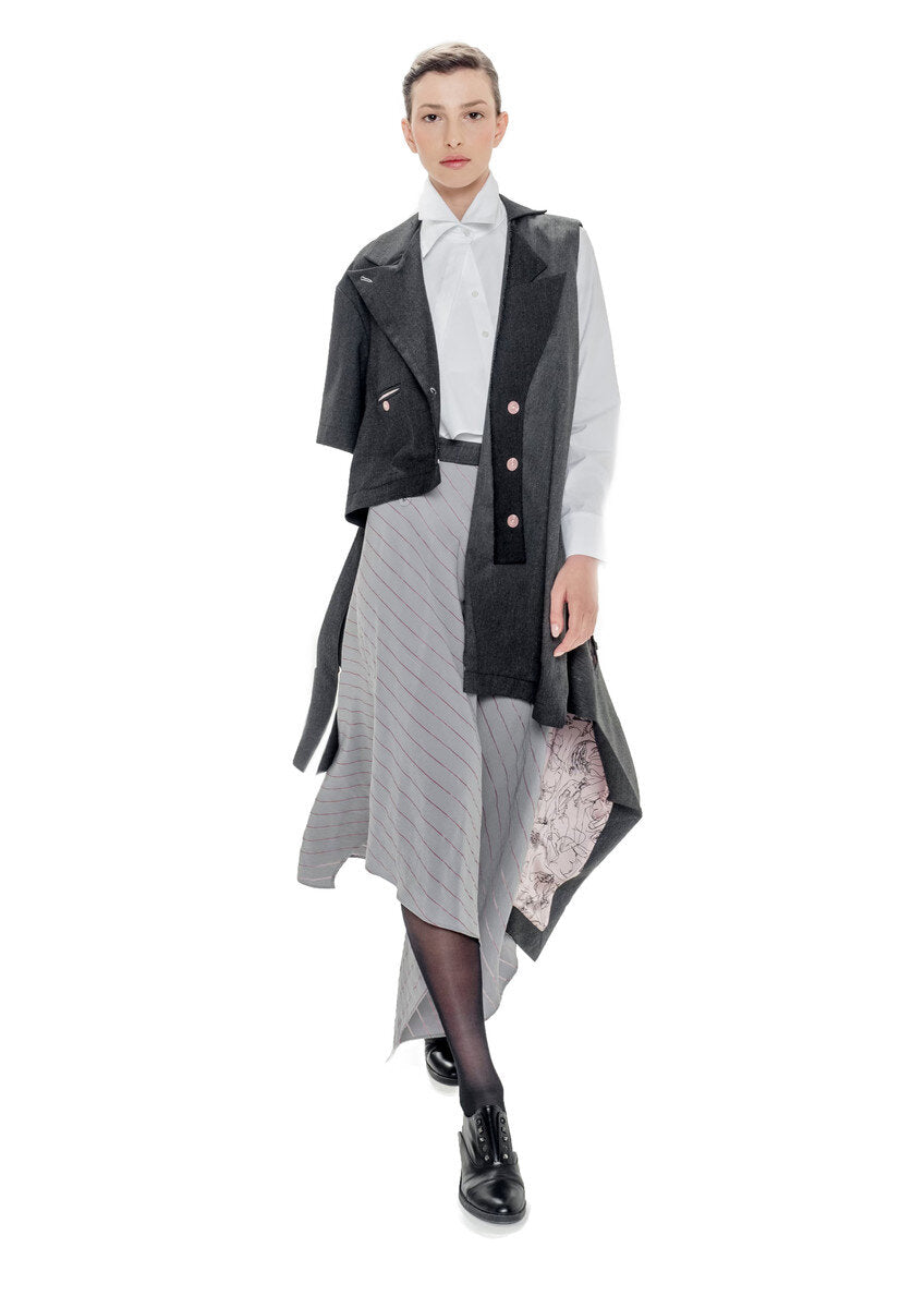 DECONSTRUCTED JACKET, RIVER COLLAR, FRONT BUTTONING
